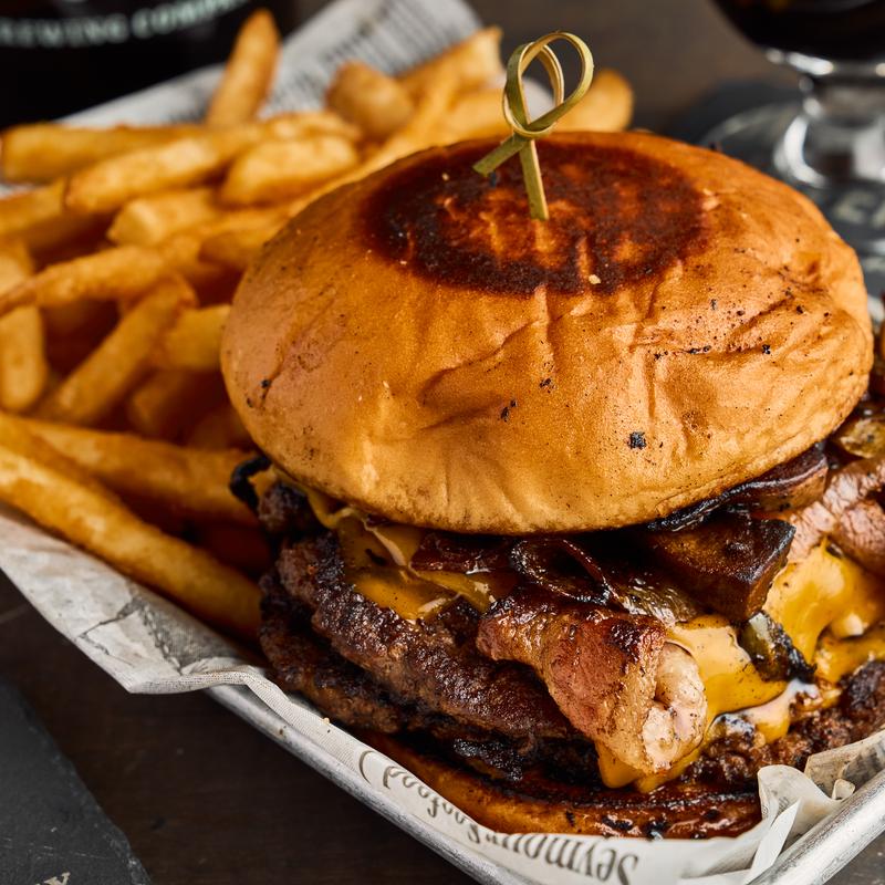 Great beer deserves great food. Our kitchen serves up bold, comforting flavors made to pair perfectly with what's in your glass. From juicy, handcrafted burgers and crispy wings tossed in house sauces, to sharable snacks that keep the conversation flowing, there's something for every appetite.